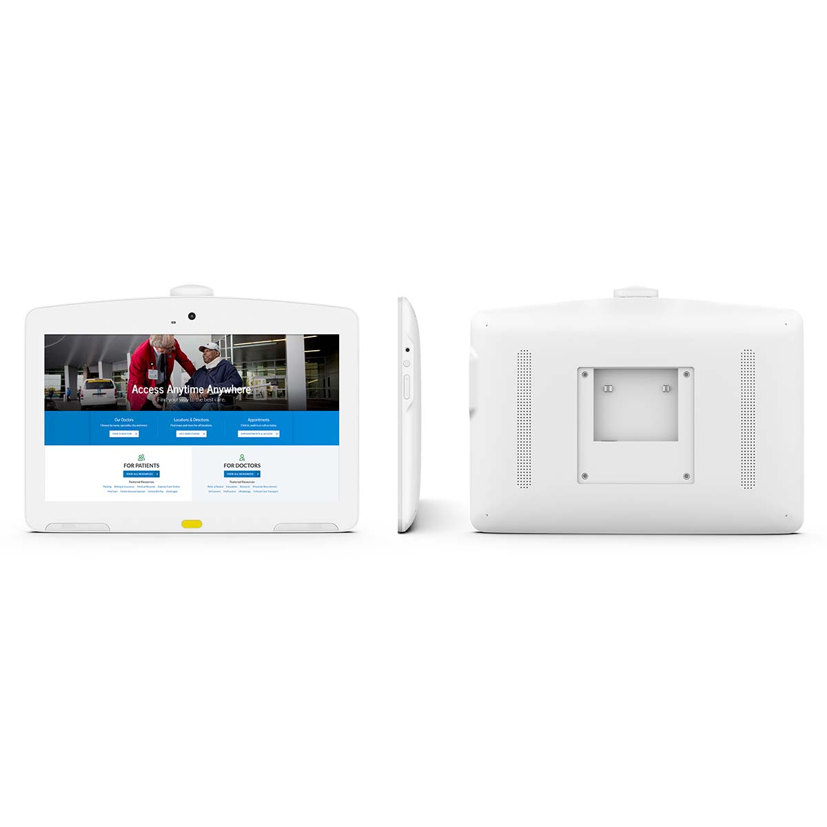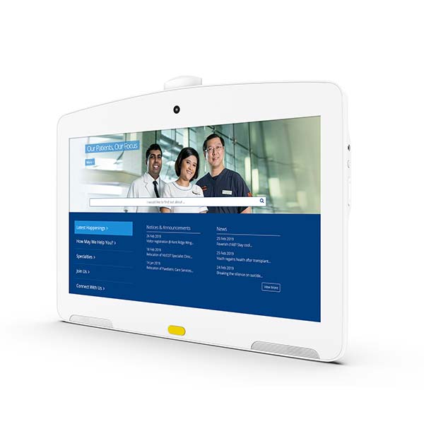 MF13 has been specially designed for the use in hospital or clinical environment, this terminal is based Android8.1OS with 13.3“ screen and powered by Rockchip3288 Quad-core processor, the 1920×1080 resolution G+G and Capactive Touch Panl ensures the excellent experience. It supports WIFI 802.11 b/g/n, USB port and 100M/1000M Ethernet RJ45R with POE function, To meet applications in hospital, the front camera has equiped with front camera with sliding privacy screen. Beside above features, and the shell requires Anti-bacterial plastic. and 100×100 Vesa hole makes it easy to install like fixed mounted on wall, arm or setting up on the table. Therefore, our Terminal can be arm-mounted on bedside or wall-mounted in doctor room to allow doctors and patients visit medical records based cloud service, or medicine management in pharmacy, but for Patients, they can also access education, their current care team, meals order, communicating with their family and entertainment etc through our terminal to create a personalized experience.